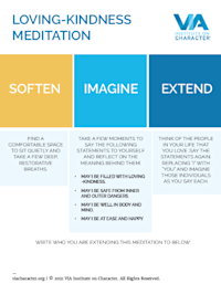 Loving-Kindness practice is a meditation that involves directing love toward yourself, other people and all living beings. It boosts self-compassion and positive emotions.